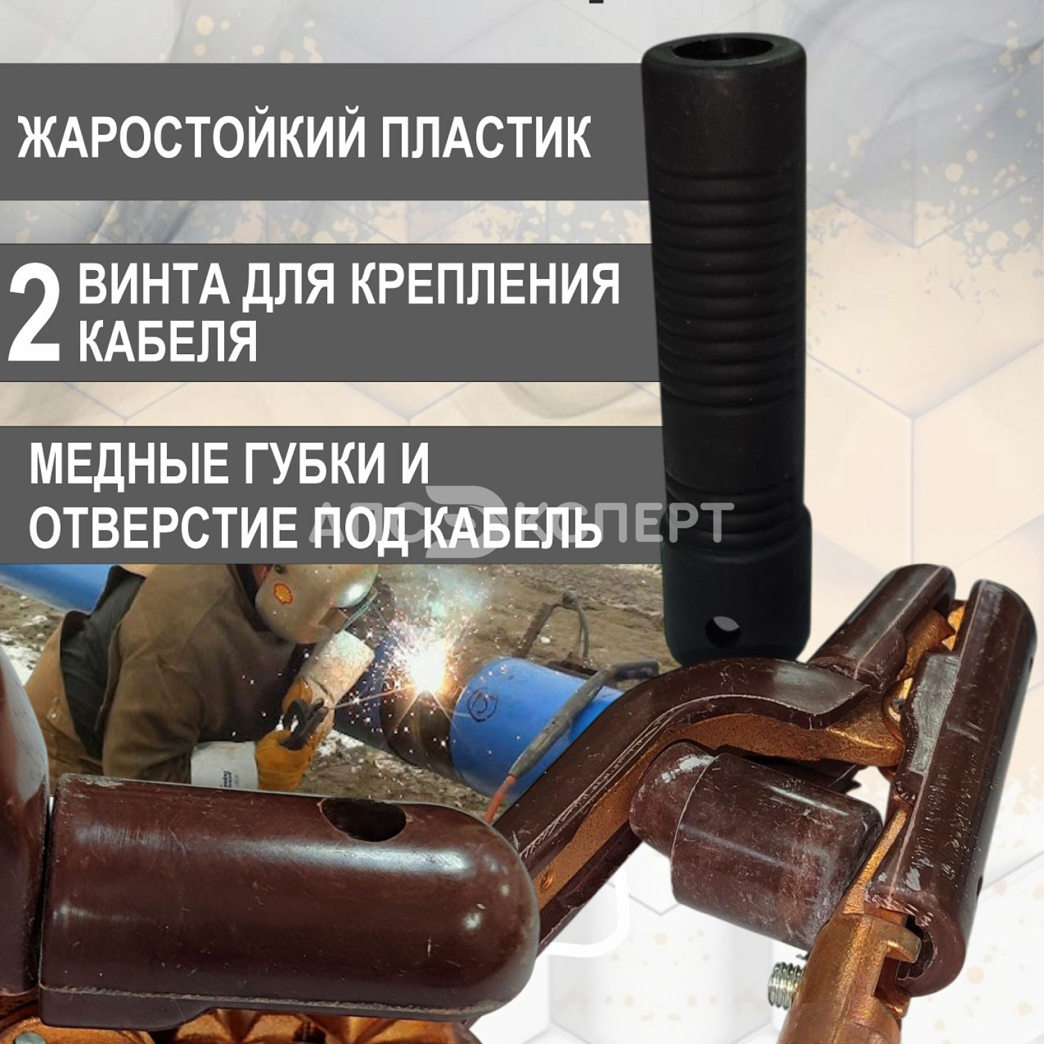 Конструкция отличается усиленной пружиной и изолированной эргономичной рукояткой, которая предотвращает перегрев и обеспечивает безопасность оператора. Винтовой зажим кабеля гарантирует надежный электрический контакт без потерь мощности.